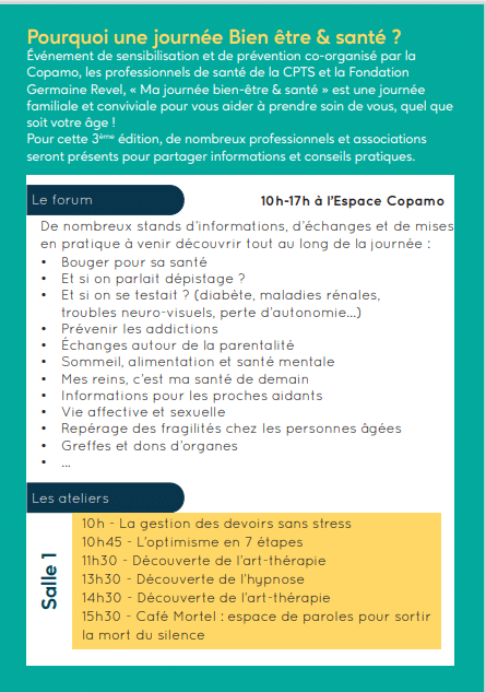 Après le succès de l’édition 2024, le Forum Santé Bien-être revient pour une nouvelle journée de prévention, d’échanges et de découvertes autour de la santé et du bien-être.
