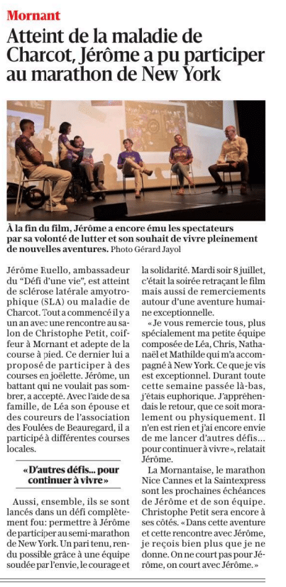 Le mardi 8 juillet s’est tenue la soirée de remerciements dédiée aux donateurs du « Défi d’une vie », un projet initié par Jérôme Rueullo pour sensibiliser à la SLA, soutenir la recherche, améliorer le quotidien des patients et promouvoir l’inclusion par le sport.